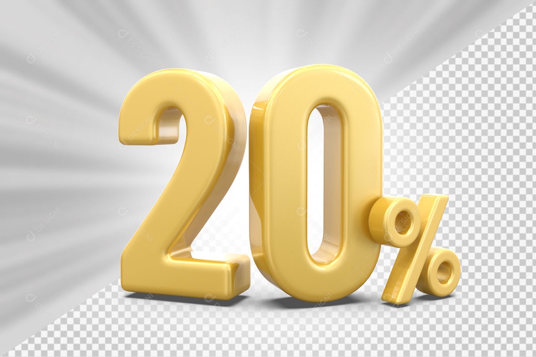 Número 3D 20% Porcento Dourado Para Composição PSD