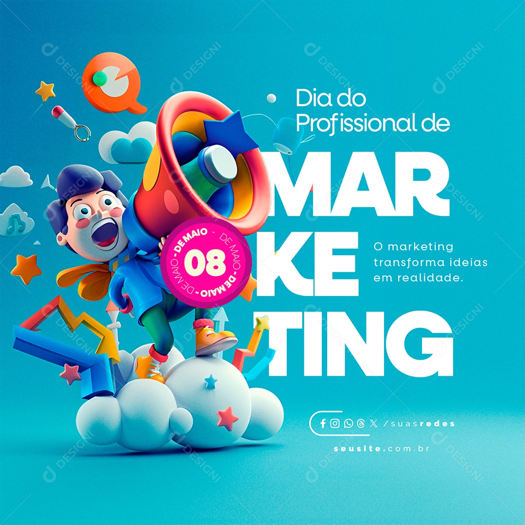 Social Media Dia do Profissional de Marketing 08 de Maio PSD Editável