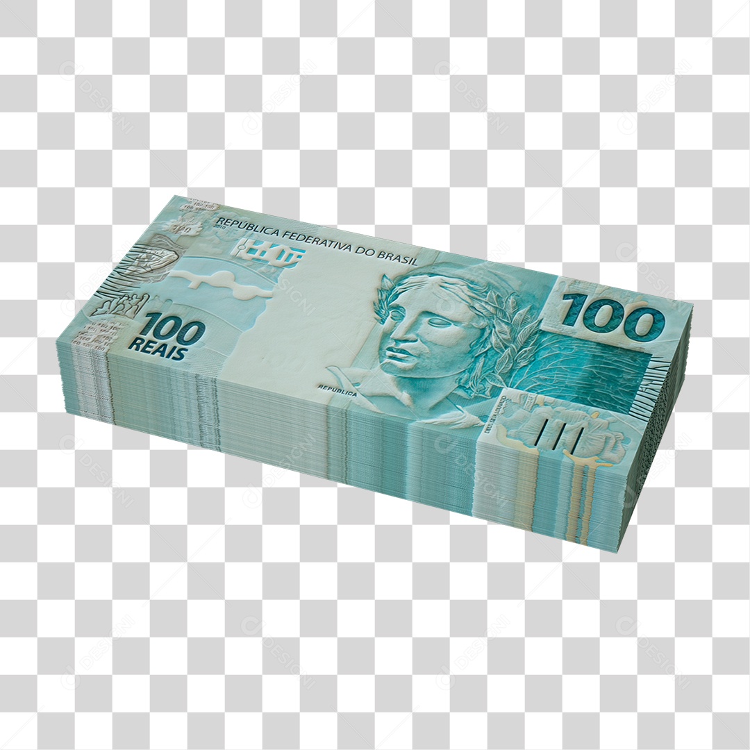 100 Reais Notas Empilhadas PNG Maço de Cédulas Transparente