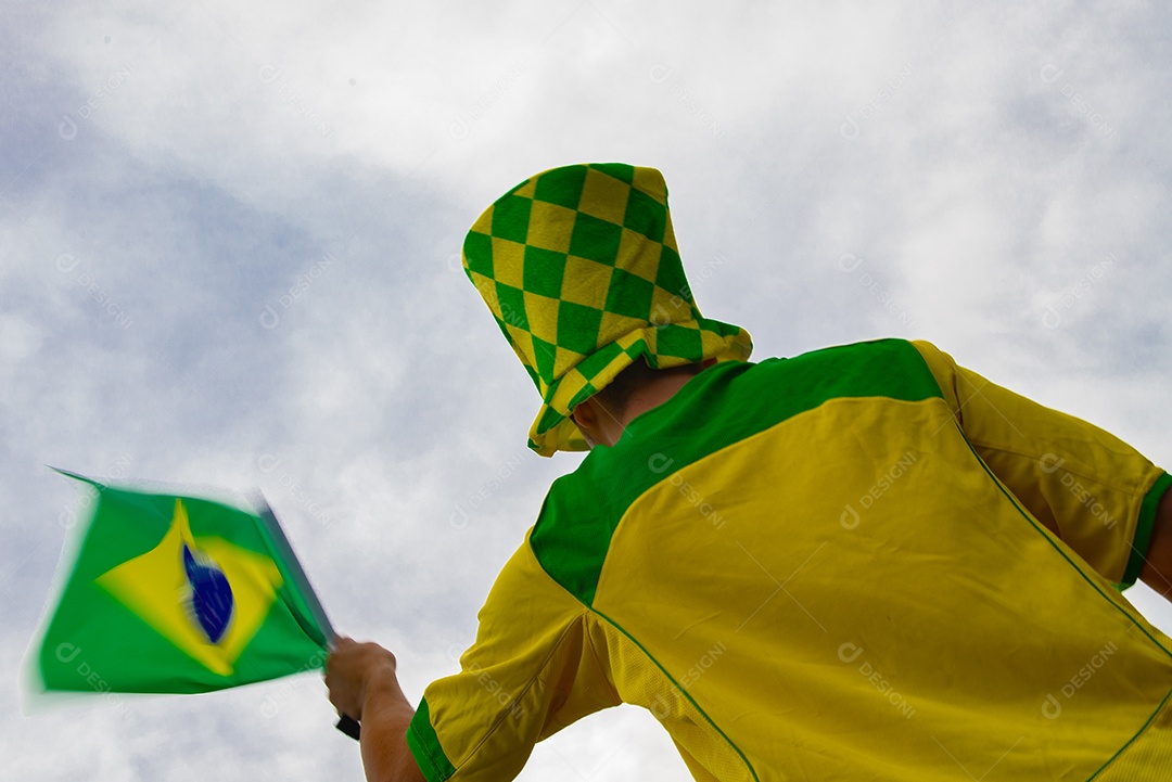 Homem brasileiro torcedor segurando bandeira do brasil Copa do Mundo