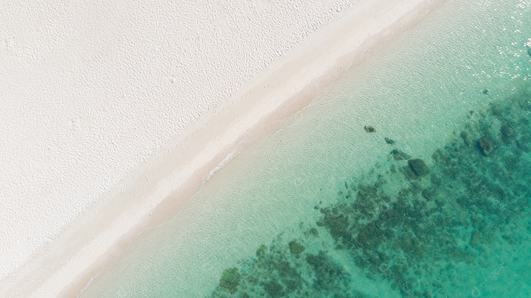 Vista aérea da praia de areia em dia ensolarado com o belo mar.