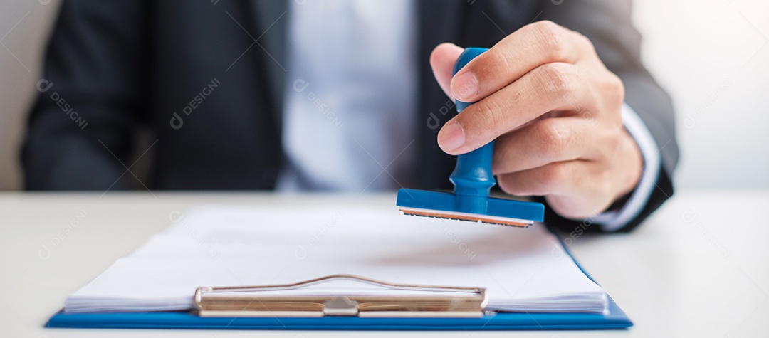Carimbo de empresário durante a assinatura do documento de contrato...