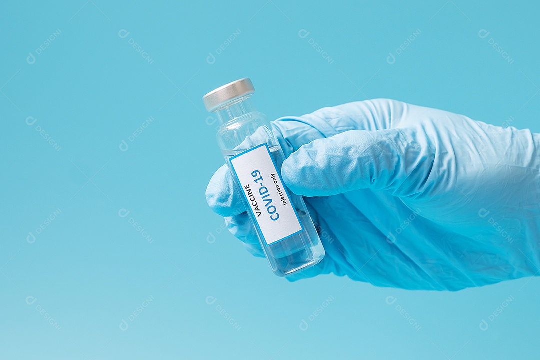 Frasco de vacina COVID-19 contra infecção por coronavírus na mão do...