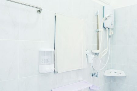 Instalação de banheira moderna, (banheira de hidromassagem), aplica...