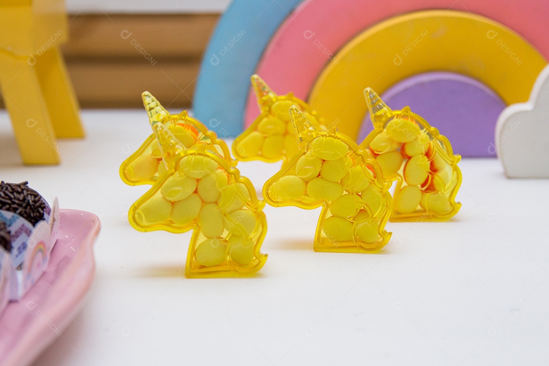 decoração de aniversário com tema unicórnio, tema muito utilizado no Brasil