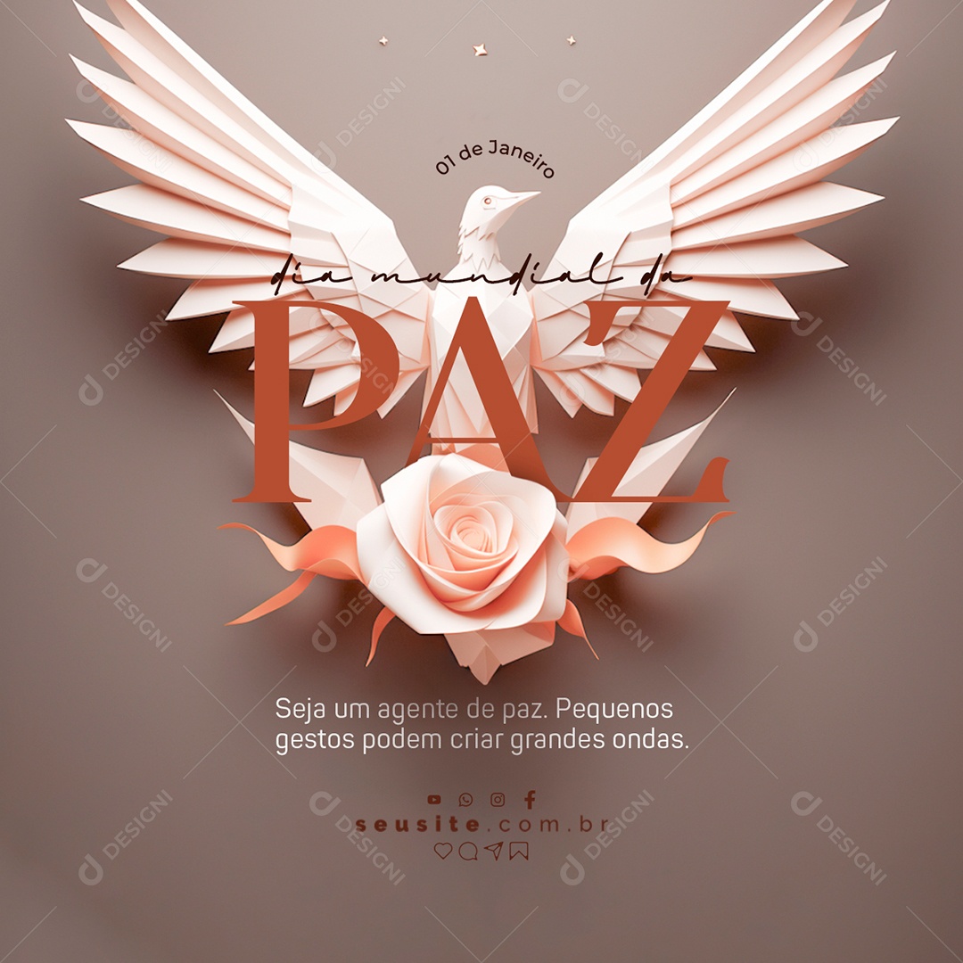 Dia Mundial da Paz Seja um Agente de Paz Pequenos Gestos Podem Criar Grandes Ondas Social Media PSD Editável