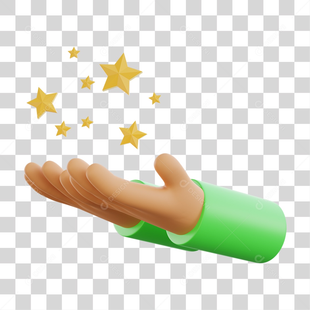 Elemento 3D Mãos com estrelas para Composição PNG Transparente