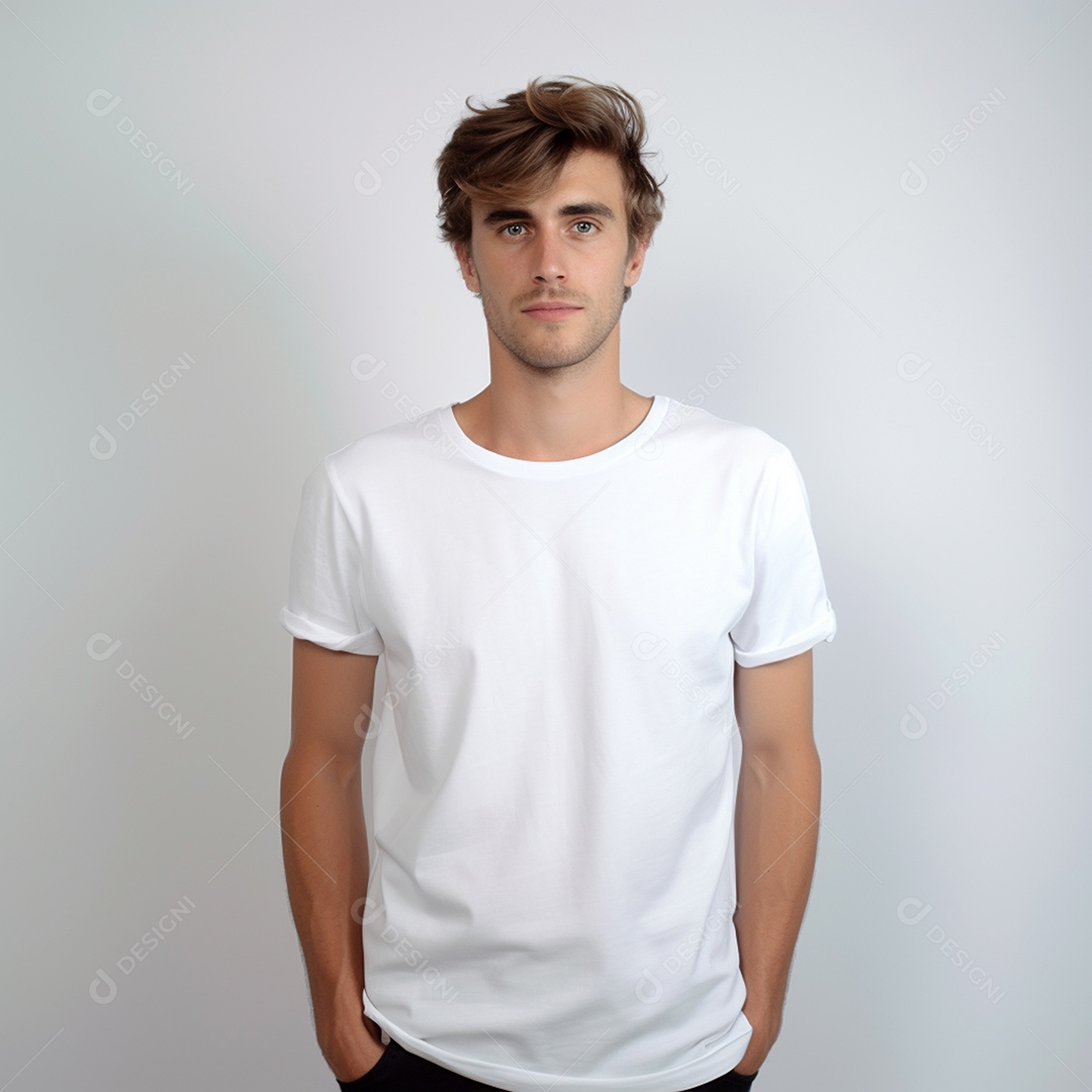 Homem Modelo Masculino Vestindo Camiseta Branca