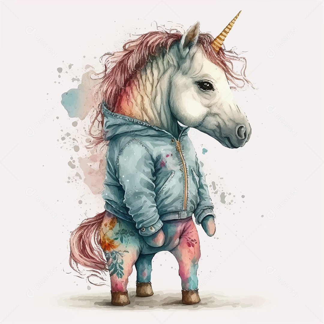 Ilustração Cavalo Unicórnio Vetor EPS Editável