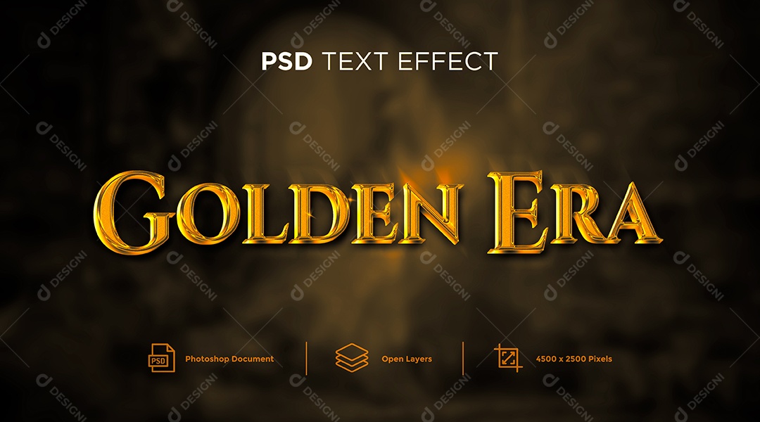 Efeito de Texto Era Dourada Golden Era PSD Editável