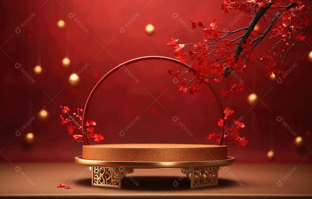 Pódio de cilindro vermelho para apresentação de exibição de produtos, ano novo chinês, festivais chineses, Festival do Meio Outono, cartaz, cartão de felicitações