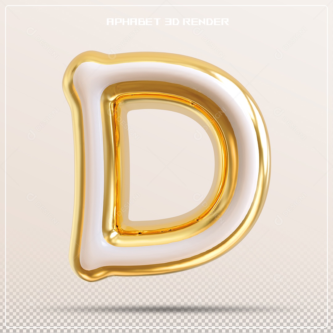 Balão Dourado Letra D Maiúscula Elemento 3D Para Composição PSD