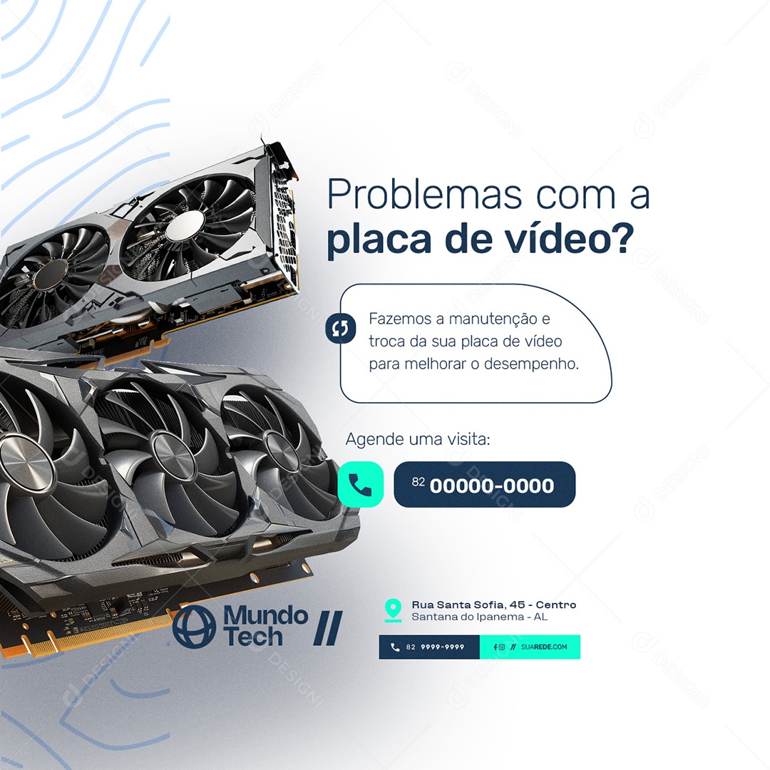 Técnico de TI Probelmas com a Placa de Vídeo Social Media PSD Editável