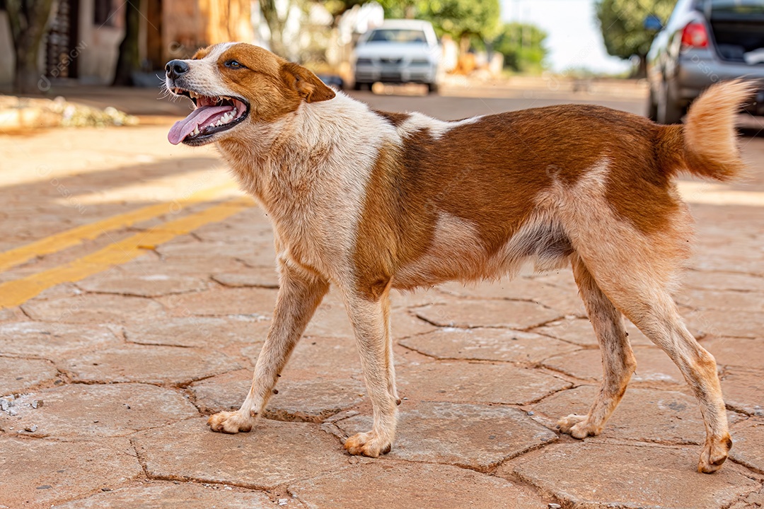 Animal mamífero cachorro abandonado na rua à tarde