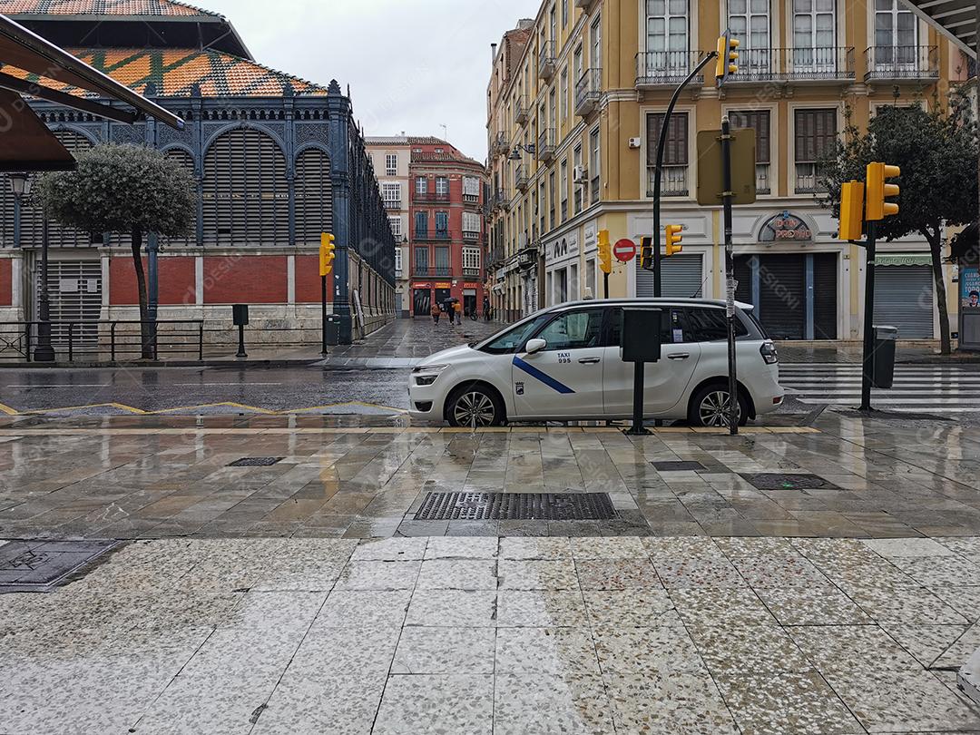Málaga, Espanha - 21 de fevereiro de 2021: Vista das ruas do Soho Málaga em um dia chuvoso