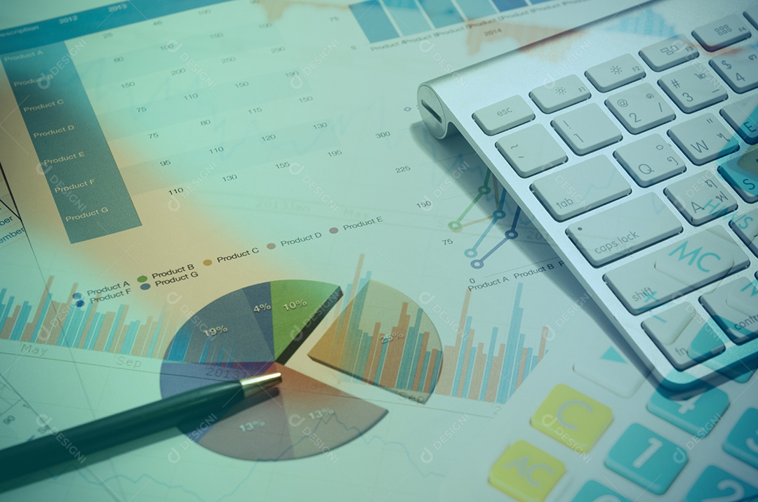 documentos de negócios com gráficos de crescimento, teclado. empres...
