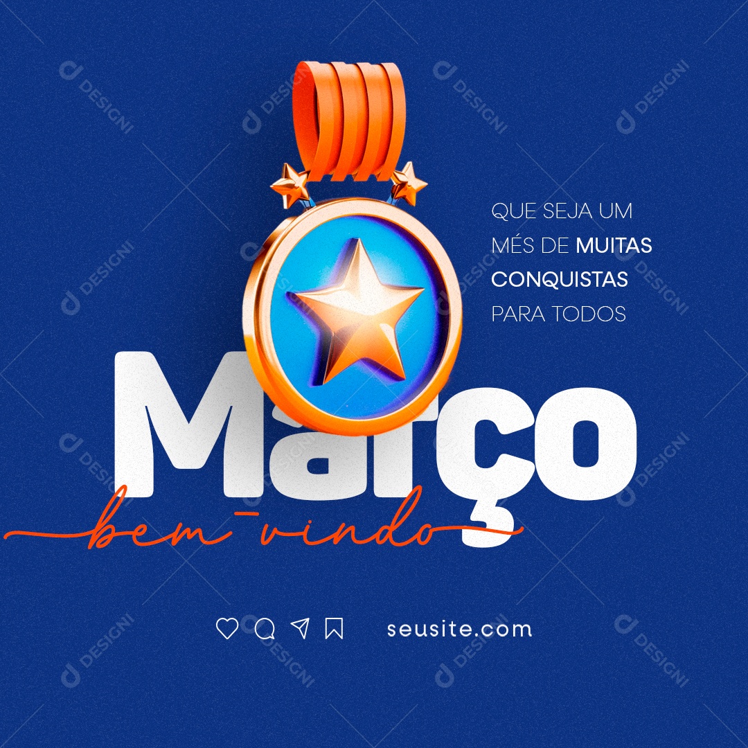 Bem Vindo Março Que seja um mês de muitas conquistas para todos Social Media PSD Editável