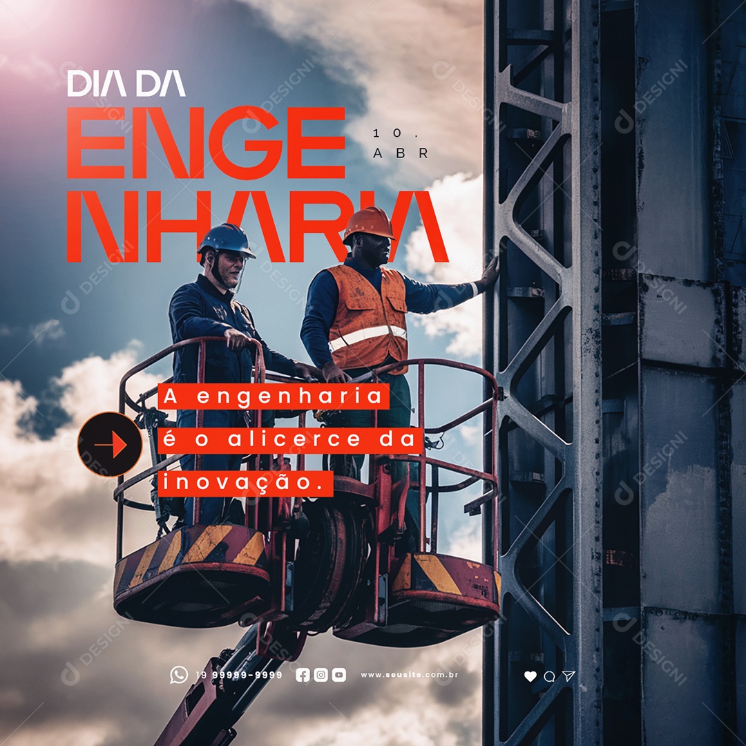 Dia da Engenharia 10 de Abril Alicerce da Inovação Social Media PSD Editável