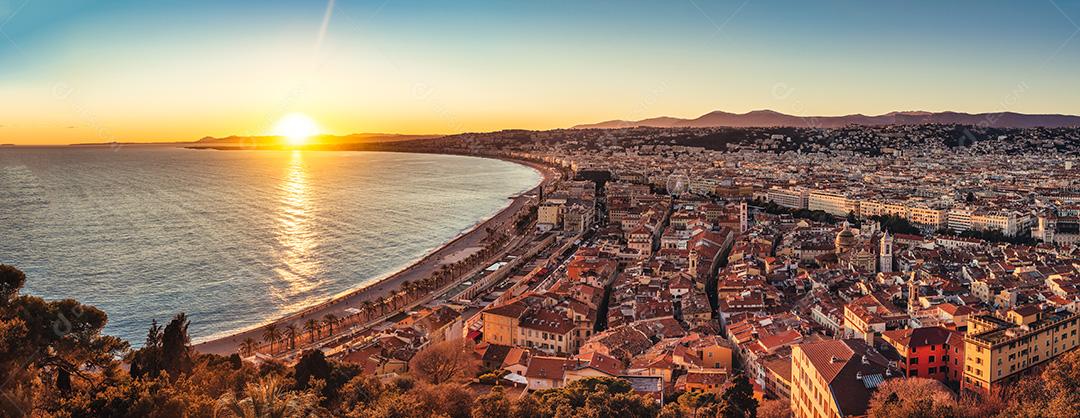 Vista Panorâmica Da Cidade De Nice Ao Pôr Do Sol Imagem JPG