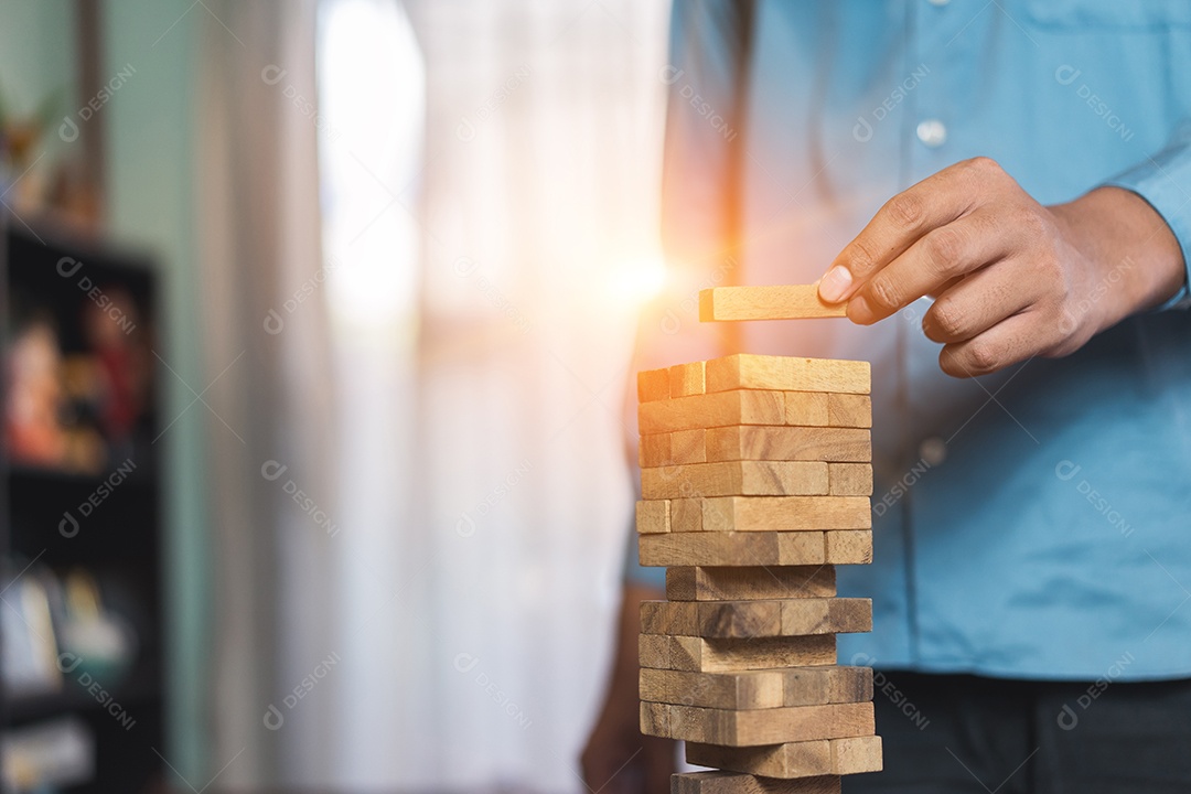 A mão do empresário que puxa o bloco de madeira