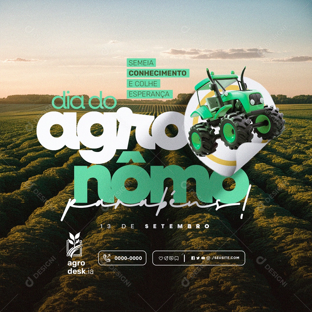 Dia do Agrônomo 13 de Setembro Parabéns Social Media PSD Editável