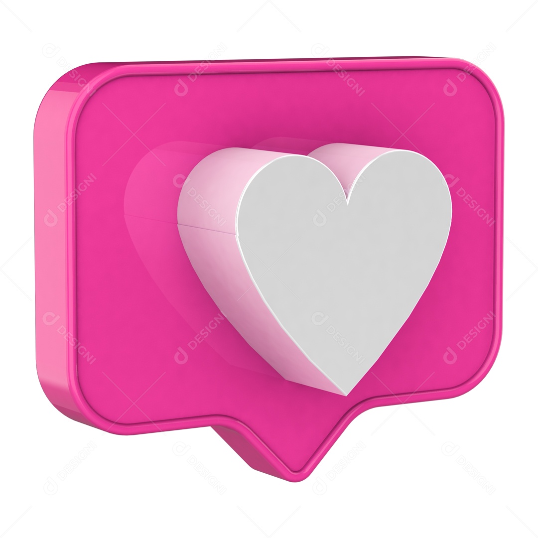 Emoji Amei Instagram em Caixa de Mensagem Rosa 3D PSD