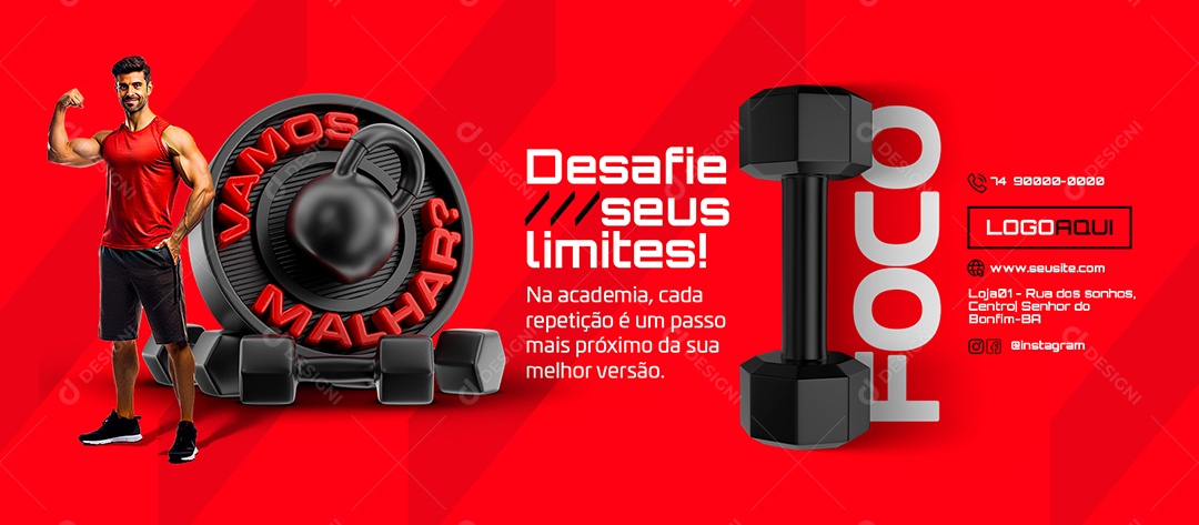 Banner Vamos Malhar Academia Foco Desafie seus Limites Social Media PSD Editável