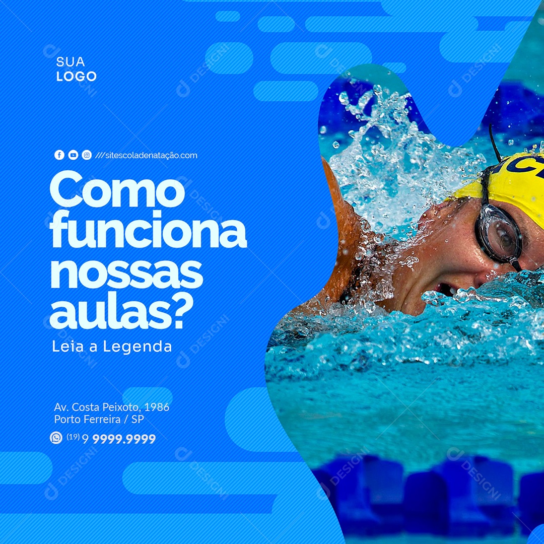 Como Funciona Nossas Aulas Escola de Natação Social Media PSD Editável
