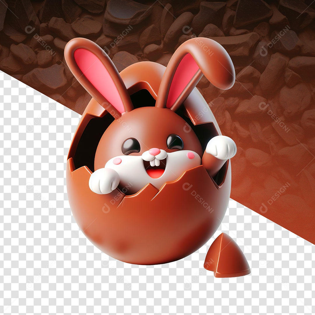 Coelho da Páscoa e Ovo de Chocolate Elemento 3D para Composição PSD