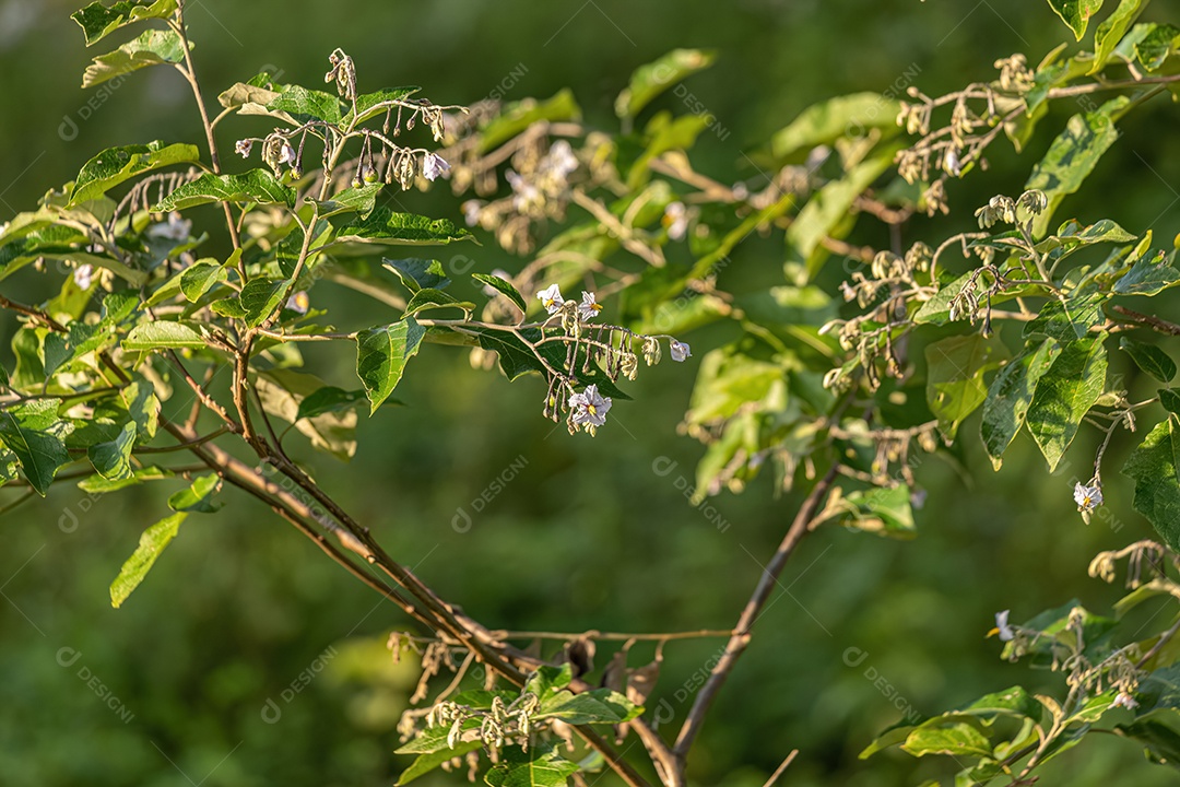 Planta com flor da espécie Solanum paniculatum comumente conhecida ...