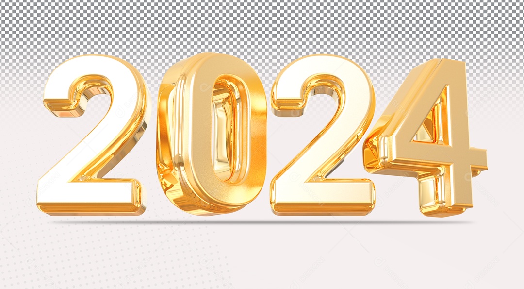 Número 2024 Dourado de Ano Novo Elemento 3D para Composição PSD