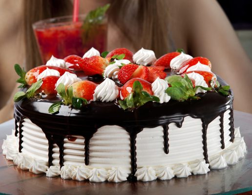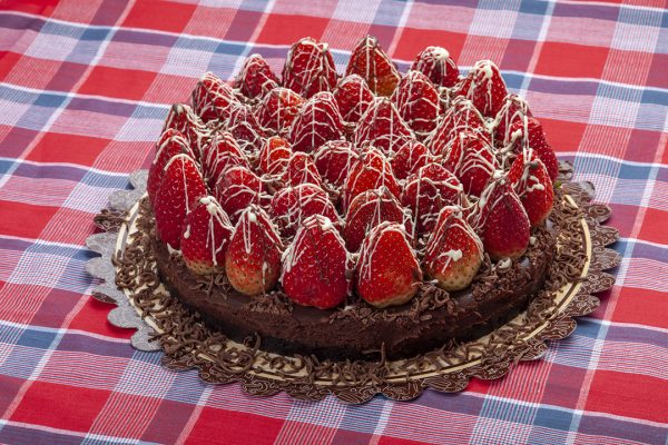 Bolo de chocolate decorado com ovos de páscoa de chocolate branco
