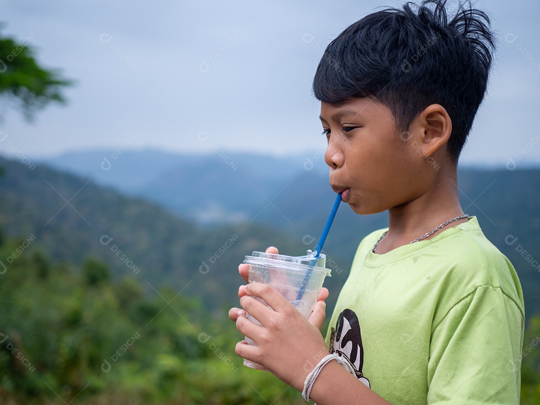 Menino tomando bebida com canudo