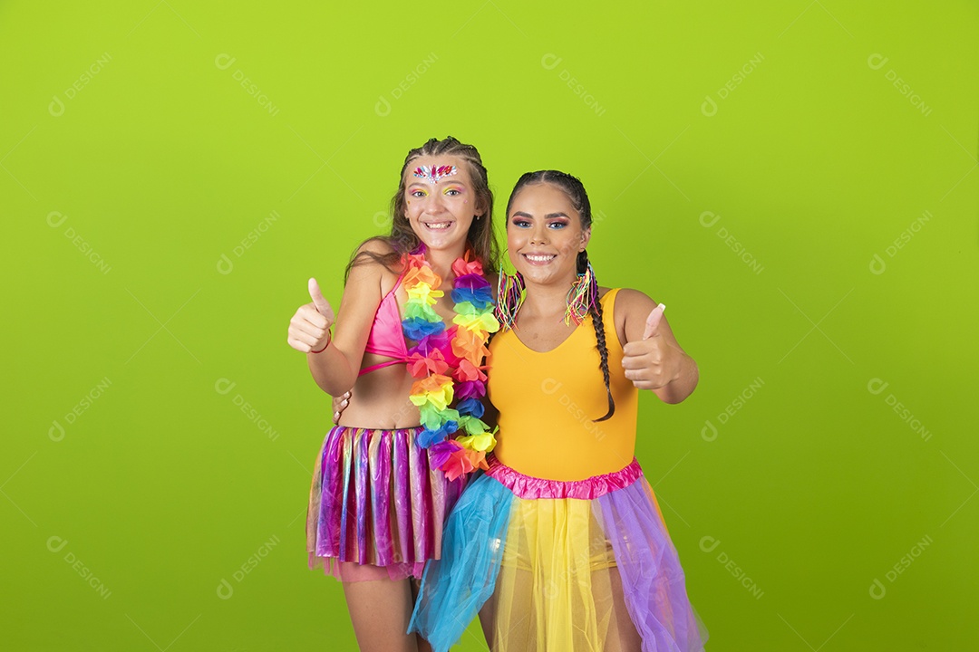 Mãe e filha usando fantasias de carnaval sobre fundo isolado