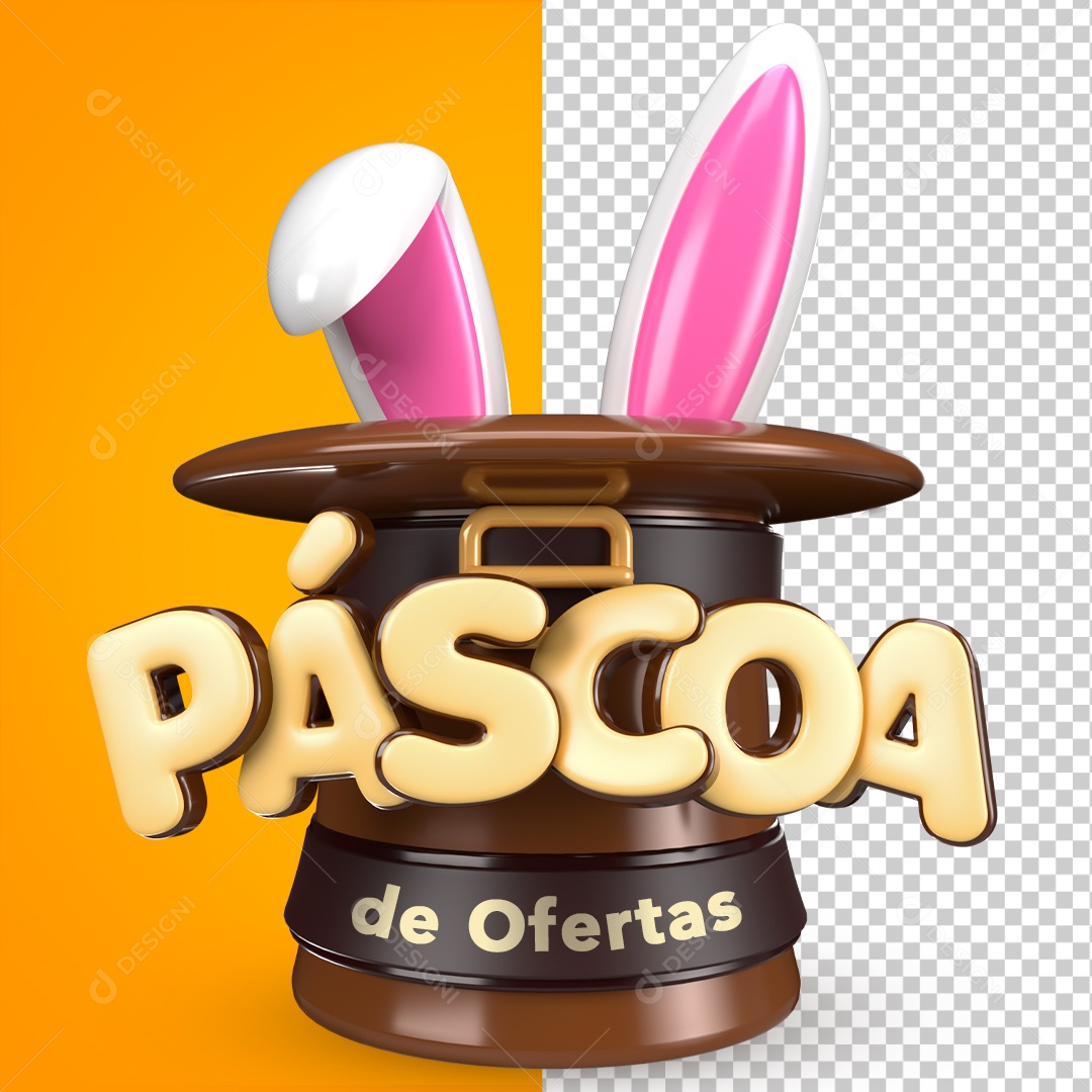 Selo 3D Páscoa De Ofertas Branca Cartola Coelho Para Composição PSD