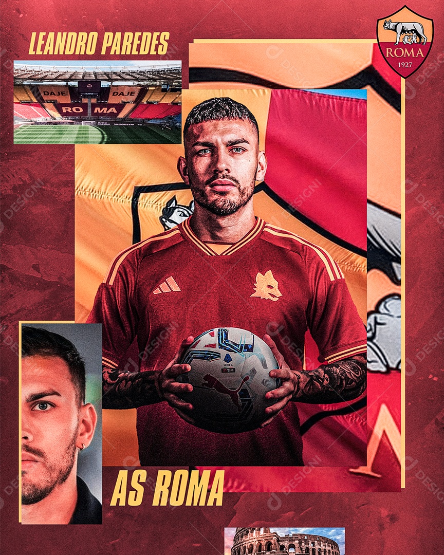 Flyer Futebol Leandro Paredes As Roma Social Media PSD Editável