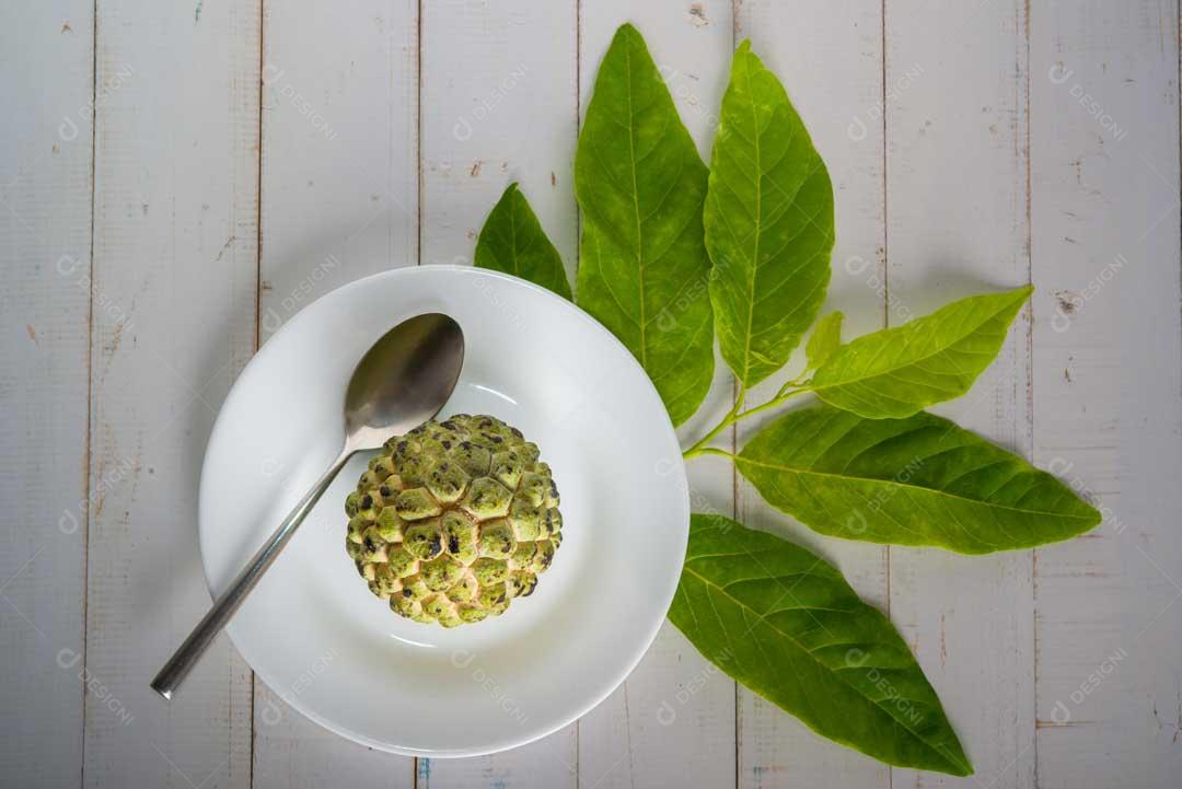 Foto Pinha No Prato Com Folhas Imagem JPG