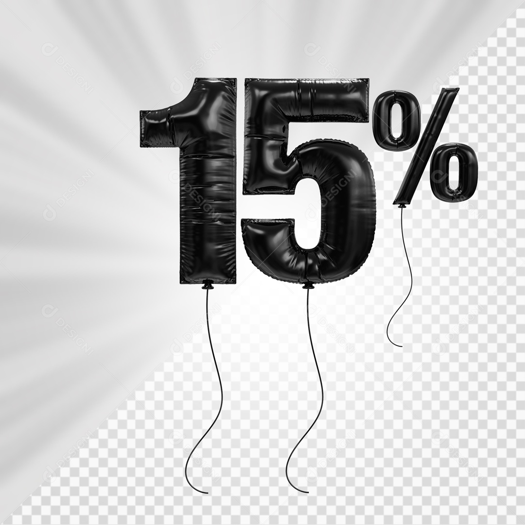 Número 3D 15% Porcento De Balão Preto Para Composição PSD