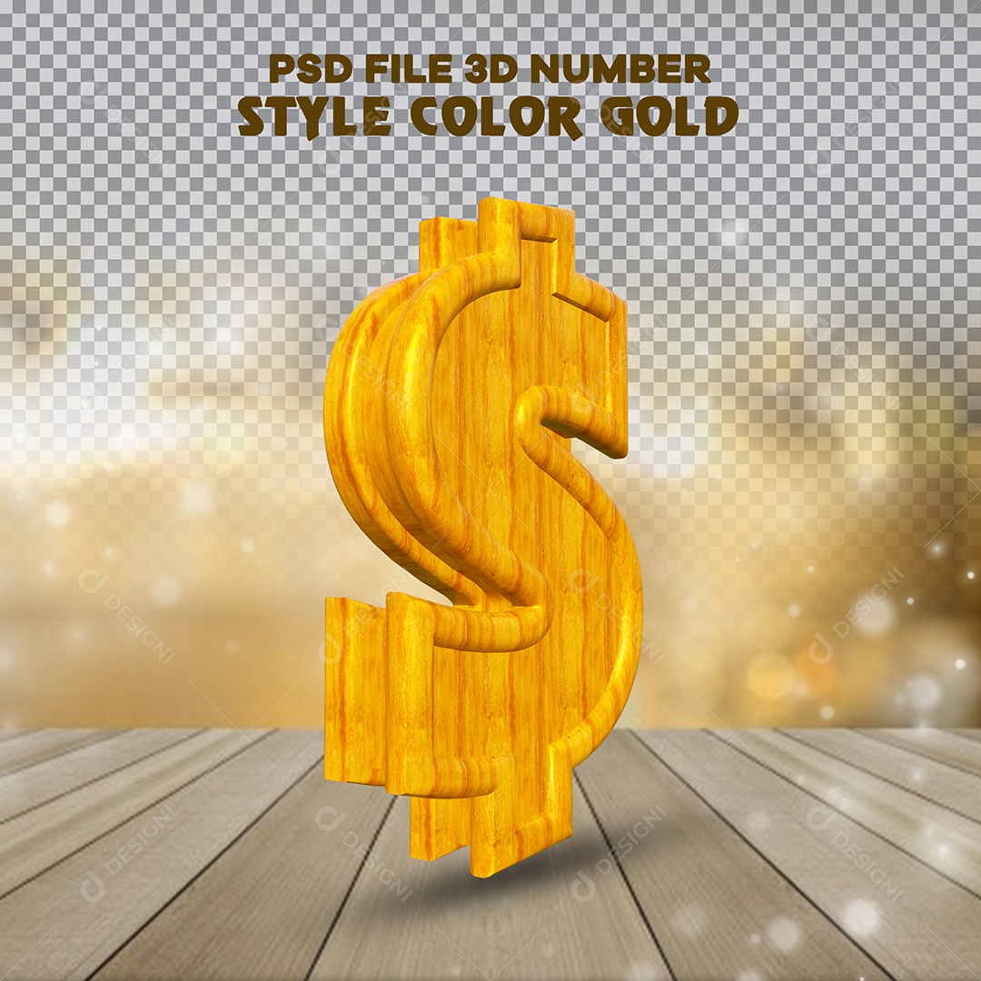 Símbolo do dólar $ 3D Dourado Para Composição PSD