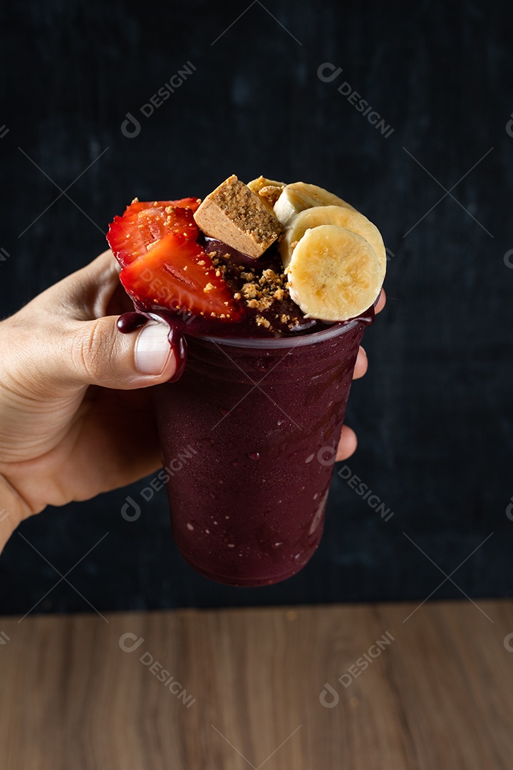 Copo de Açaí com Banana Morango e Paçoca.
