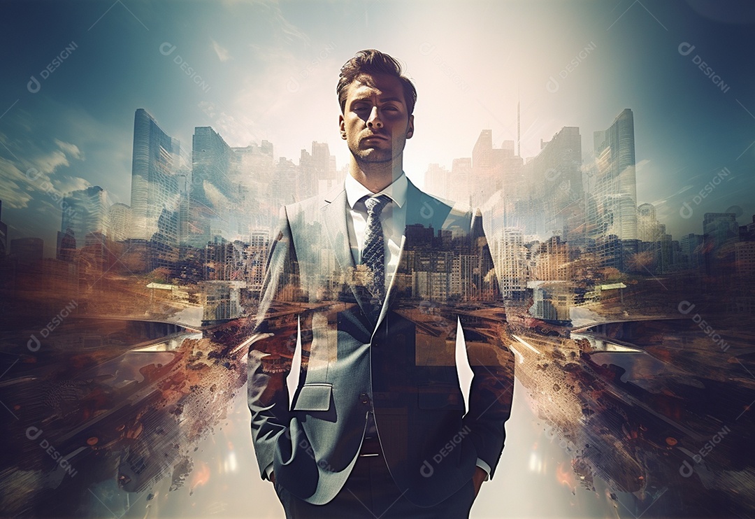 Uma Dupla Exposição de um Empresário na Paisagem Urbana