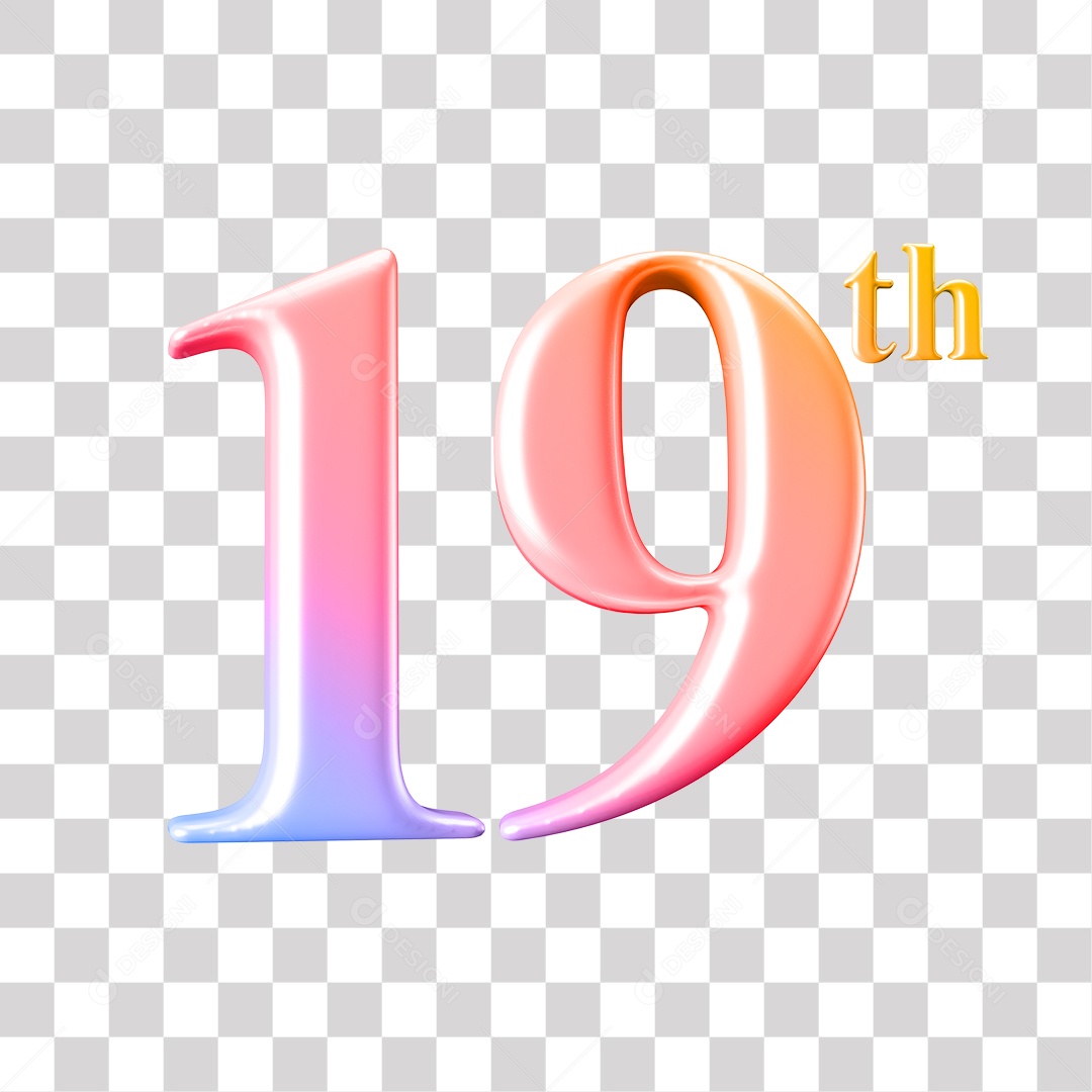 Elemento 3D Para Composição Número 19 Degrade Rosa e Roxo PNG Trans...