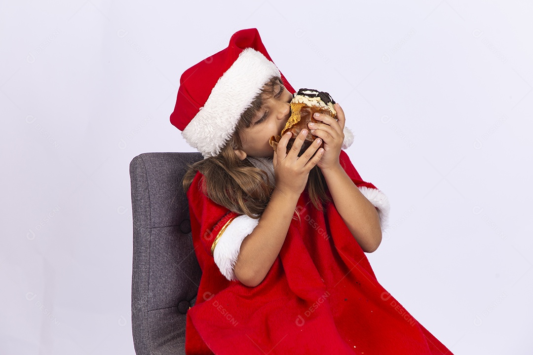 Linda garotinha segurando delicioso panetone