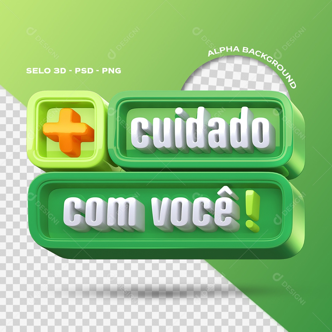 Mais Cuidado Com Você Selo 3D para Composição PSD