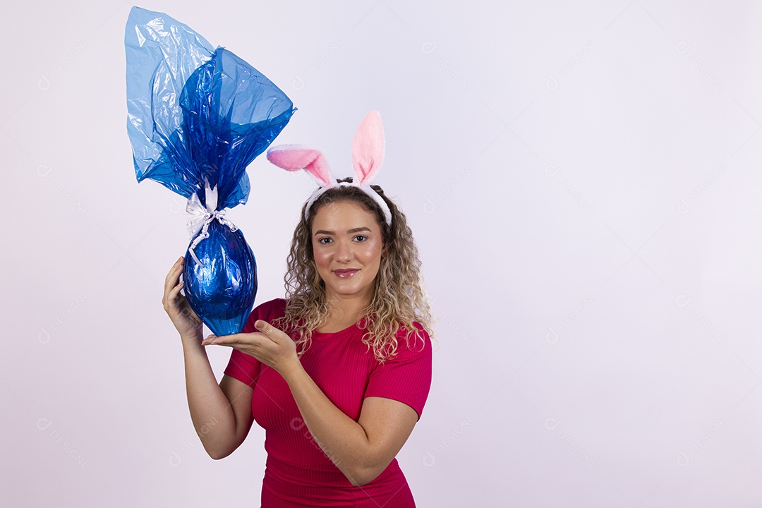 Linda Mulher Garota fantasiada de coelho da páscoa sobre fundo isolado
