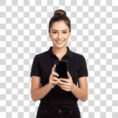Jovem Mulher com Celular nas Mãos PNG Transparente