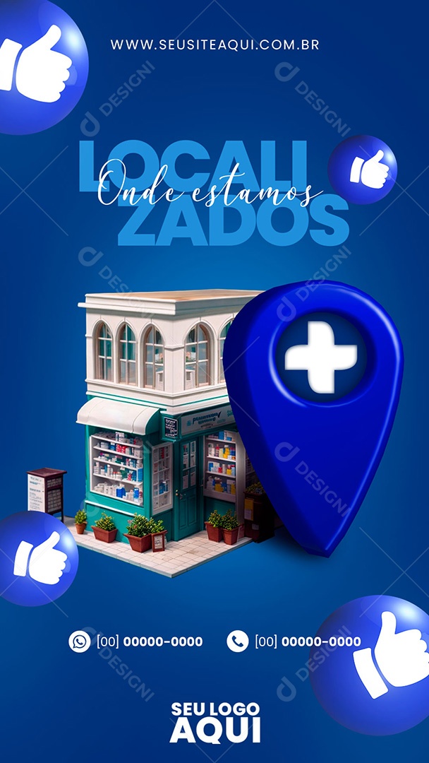 Story Farmácia Localizados Onde Estamos Social Media PSD Editável