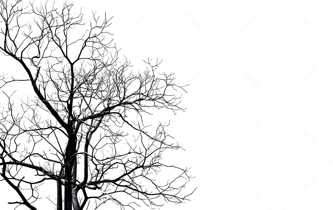 Silhueta de árvore morta e galho isolado no fundo branco.