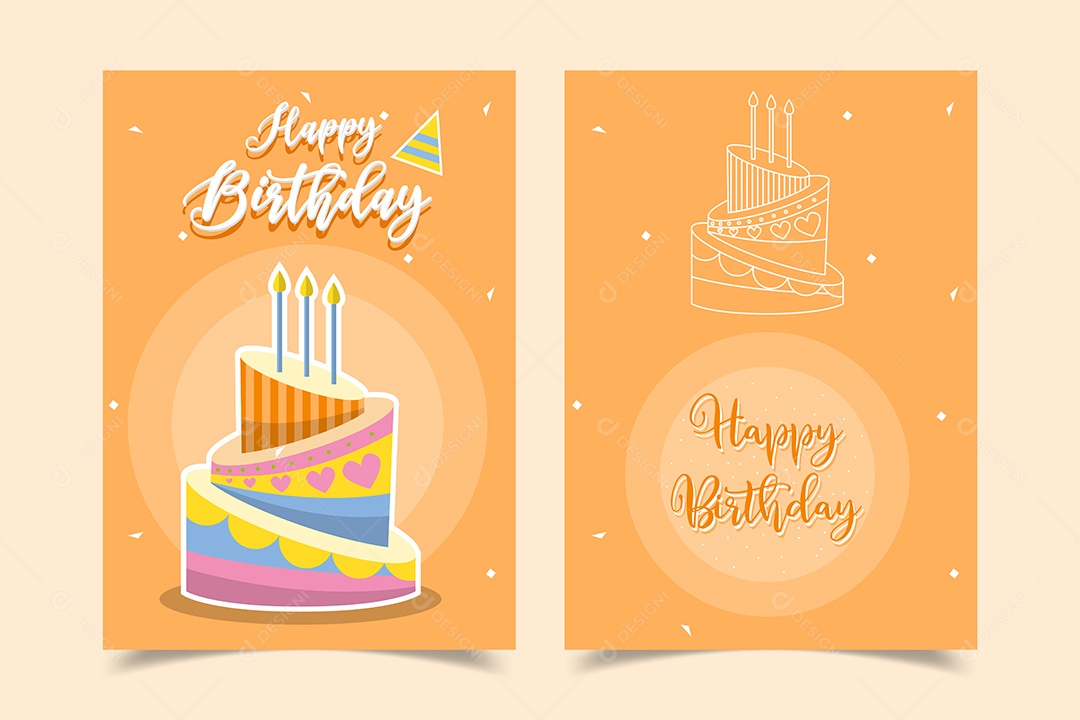 Cartão de Feliz Aniversário decorado com fotos de bolo Vetores EPS
