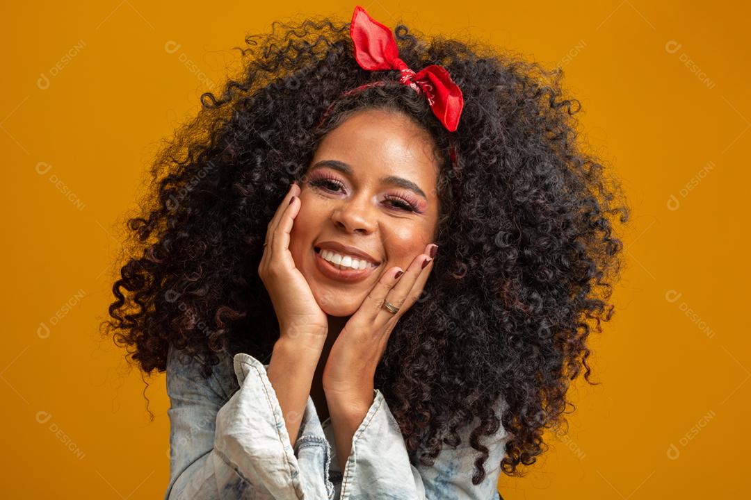 Retrato da beleza da mulher afro-americana com penteado afro e maquiagem glamour. mulher brasileira